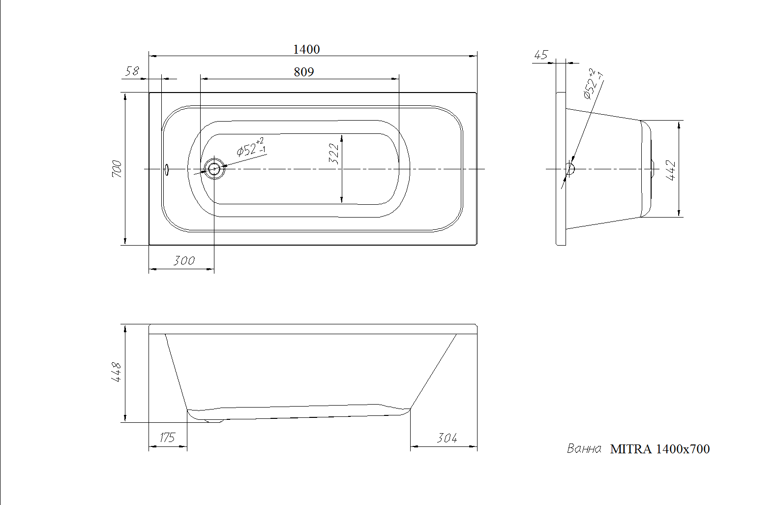 Акриловая ванна  Mitra 1400*700 Акриловая ванна  Mitra 1400*700