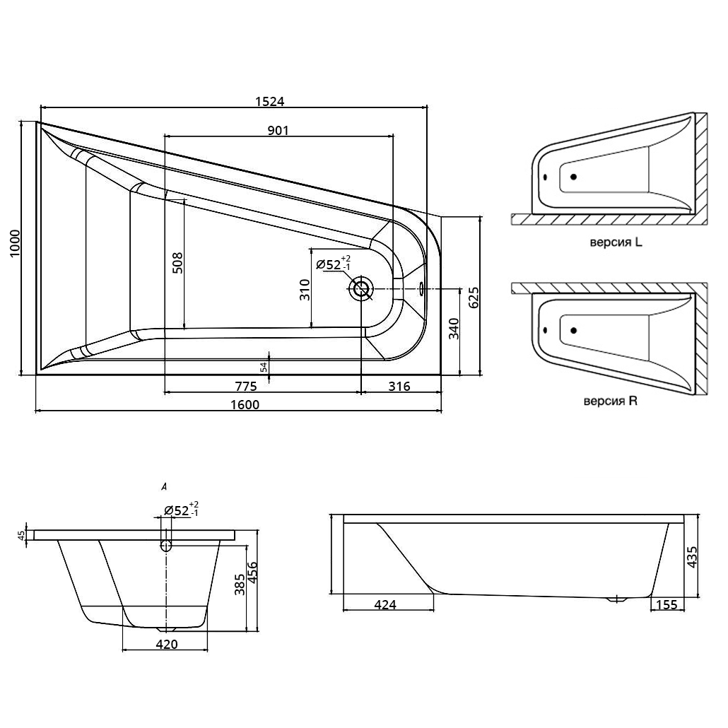•  возможность оснащения ванны гидро- и аэромассажем;