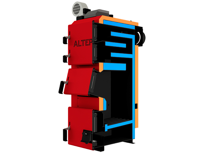 Конвекционная часть котла состоит из стального многоходового теплообменника, который быстро нагревается, обеспечивая максимально эффективную теплоотдачу. Многоканальная система подачи воздуха обеспечивает длительное и равномерное сгорание топлива сверху донизу. Такое преимущество позволяет использовать различные виды топлива, различных размеров и фракции.