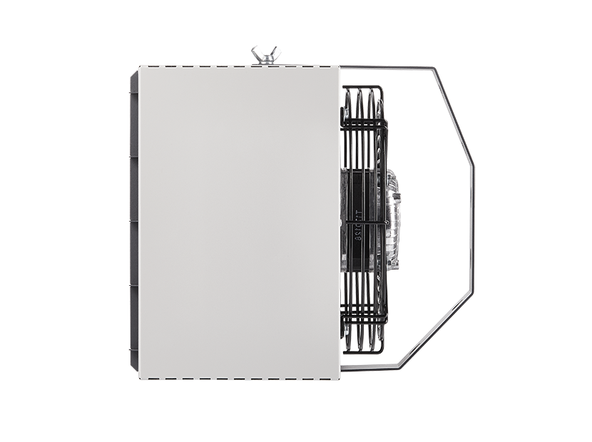 Благодаря выносному пульту управления со встроенным термостатом обеспечивается удобство эксплуатации и точное поддержания требуемой температуры в диапазоне +10…+30°С в рабочей зоне помещения. Регулировка угла наклона производится в двух плоскостях благодаря поворотному кронштейну.