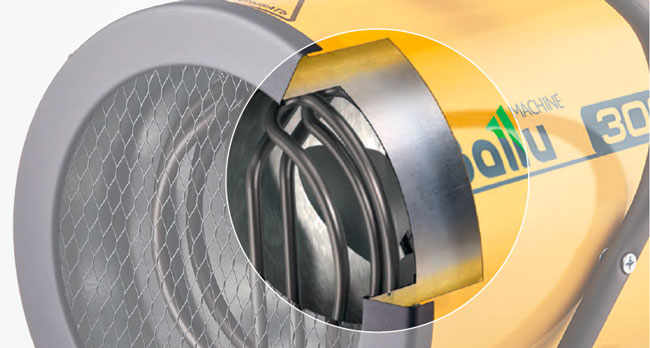 Надёжные и эффективные ТЭНы из нержавеющей стали приспособлены для работы в сложных условиях, таких как пыль и грязь. А специально разработанная форма нагревательных элементов позволяет достичь максимальной эффективности при работе.