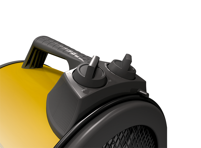 Помимо стандартного размещения на полу, тепловую пушку Prorab 2 можно подвесить на стену или колонну, выбрав необходимый угол обдува с помощью барашковых винтов, которые надежно фиксируют пушку. Это поможет сэкономить рабочее пространство и повысить безопасность. При установке прибора на стене уменьшается разница температуры по высоте, тем самым сокращается расход на электроэнергию.