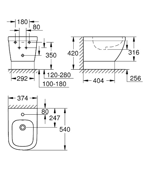 Биде подвесное для ванной комнаты GROHE EURO 37,4x54x39,5 cm – это стильное биде, которое подойдет в любой интерьер вшей ванной комнаты.