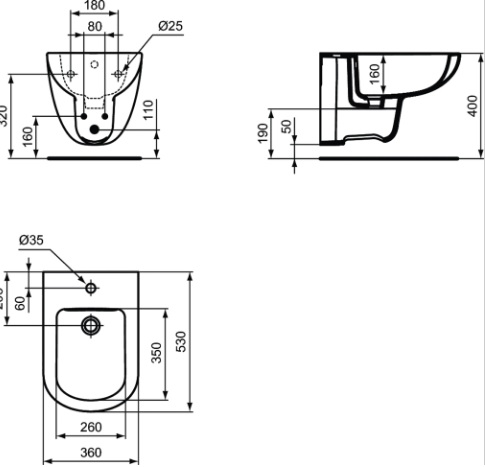 Биде подвесное  для ванной комнаты IDEAL STANDARD TEMPO, 36x53x35 cm Биде подвесное  для ванной комнаты IDEAL STANDARD TEMPO, 36x53x35 cm