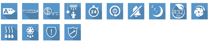 • При работе на обогрев, функция дежурного отопления "+8 градусов", позволяет при минимальном потреблении электроэнергии поддерживать температуру в помещении +8°С, для предотвращения замерзания;