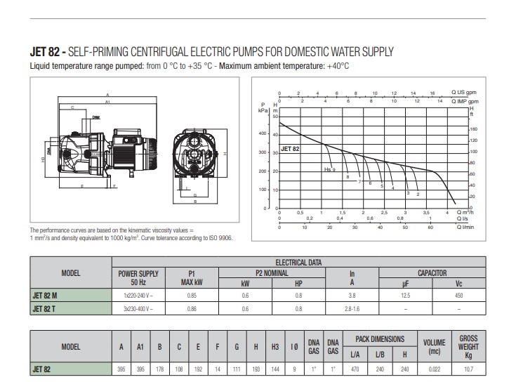 Поверхностный самовсасывающий центробежный насос DAB JET 82 M имеет значительную всасывающую способность даже в том случае, когда вода наполнена пузырьками или небольшим количеством взвешенного песка.