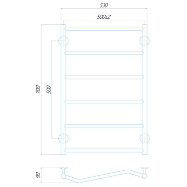 Полотенцесушитель «Деффи» имеет четыре подвода с резьбовыми соединениями 1/2” для подключения к системе горячего водоснабжения, комплектуется четырьмя крепежными кронштейнами, заглушками 1/2” и краном Маевского.