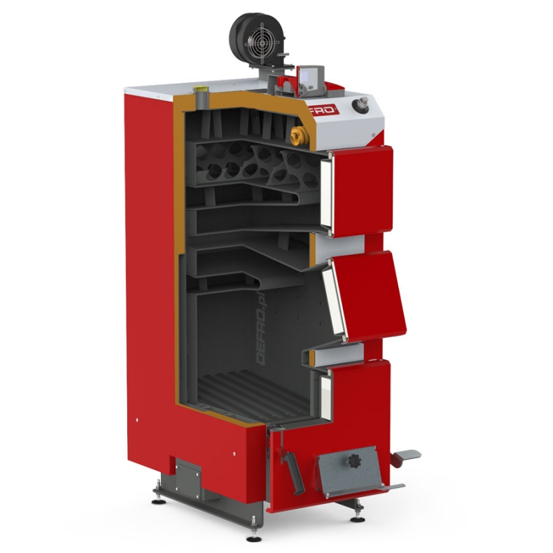 Котлы Defro KDR 3 Plus – это конструкция, основанная на модели линии KDR 2, расширенная системой электронного управления наддувом воздуха для сжигания топлива.