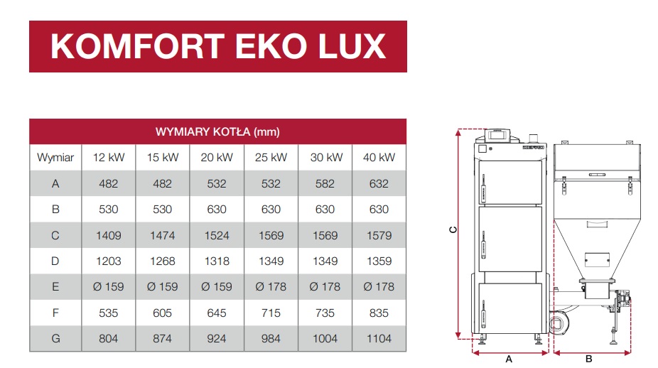 • Комфорт Эко Люкс имеет ряд тепловых защит, гарантирующих правильную работу котла и безопасное использование устройства, а также так называемые система выравнивания давления в топливном баке.