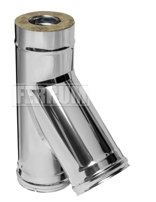 Утепленный дымоходный Тройник FERRUM Ø 180-280 135° (430/0,5 mm) Двустенный дымоход или сэндвич представляет собой конструкцию, состоящую из двух труб разного диаметра (внешней и внутренней). Пространство между этими трубами заполнено теплоизоляционным материалом негорючего свойства. Наполнитель состоит из базальтового волокна высокого качества. Такая конструкция способствует быстрому нагреву внутренней трубы. За короткий промежуток времени после старта температура в дымоходе поднимается выше «точки росы», и это помогает избежать образование конденсата.
