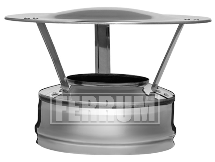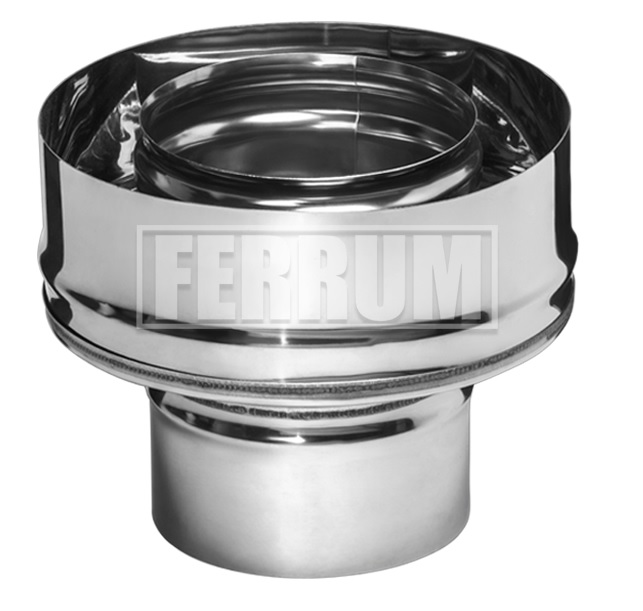 Оголовок FERRUM Ø 115-200 (430/0,5 mm) Двустенный дымоход или сэндвич представляет собой конструкцию, состоящую из двух труб разного диаметра (внешней и внутренней). Пространство между этими трубами заполнено теплоизоляционным материалом негорючего свойства. Наполнитель состоит из базальтового волокна высокого качества. Такая конструкция способствует быстрому нагреву внутренней трубы. За короткий промежуток времени после старта температура в дымоходе поднимается выше «точки росы», и это помогает избежать образование конденсата.