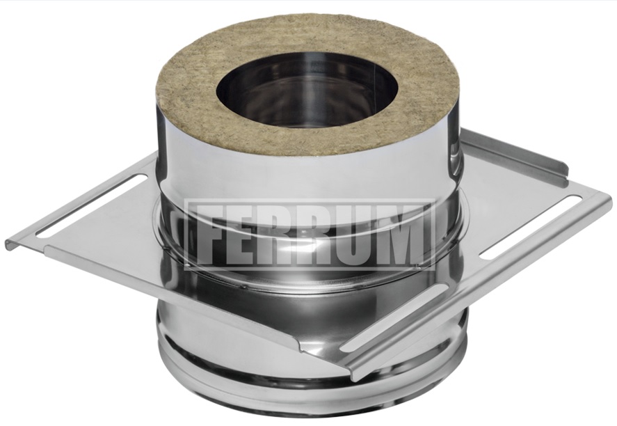 Площадка монтажная FERRUM Ø 115-200 (430/1,5 mm) Двустенный дымоход или сэндвич представляет собой конструкцию, состоящую из двух труб разного диаметра (внешней и внутренней). Пространство между этими трубами заполнено теплоизоляционным материалом негорючего свойства. Наполнитель состоит из базальтового волокна высокого качества. Такая конструкция способствует быстрому нагреву внутренней трубы. За короткий промежуток времени после старта температура в дымоходе поднимается выше «точки росы», и это помогает избежать образование конденсата.