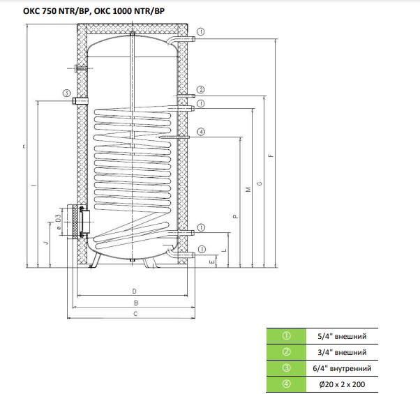 Версия NTR имеет один теплообменник, размещенный в нижней части резервуара, а для нагрева использует один источник отопительной воды. - 5 - Версия NTRR оснащена двумя теплообменниками для любой комбинации двух источников отопительной воды, можно подключить два теплообменника последовательно. Типы NTR/BP и NTRR/BP не имеют нагревательного элемента. Водонагреватель нельзя использовать для проточного нагрева воды.