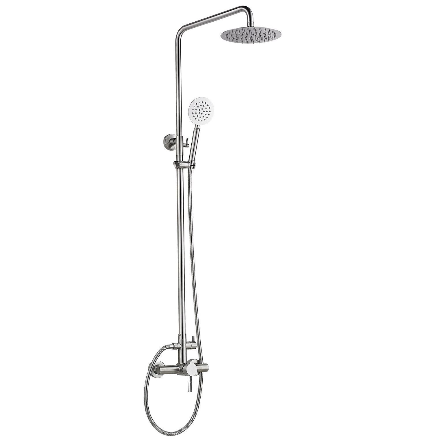 Ведь обустраивая ванную вам необходимо позаботиться о своём комфорте и не тратить время на бесконечные поиски альтернатив и качества. В душевой комплект входит: лейка для душа, выполненная в стиле тропик. Ширина лейки 20 см. телескопическая стойка и смеситель. Высота стойки 135 см. ручная лейка, которая имеет три режима работы. шланг для ручной лейки. Длина шланга 150 см. крепление для ручного душа. Крепление передвижное, которое обеспечивает максимальный комфорт от использования. смеситель с переключателем ванна/душ. все необходимые материалы для монтажа. Материал корпуса комплекта латунь. Один из самых долговечных из современных сплавов. Покрывается Зегор леб 16 хромом, что очень эстетично смотрится. Хром предотвращает коррозию, за ним легко ухаживать и он не боится моющих средств. Смеситель имеет способ монтажа на стену.