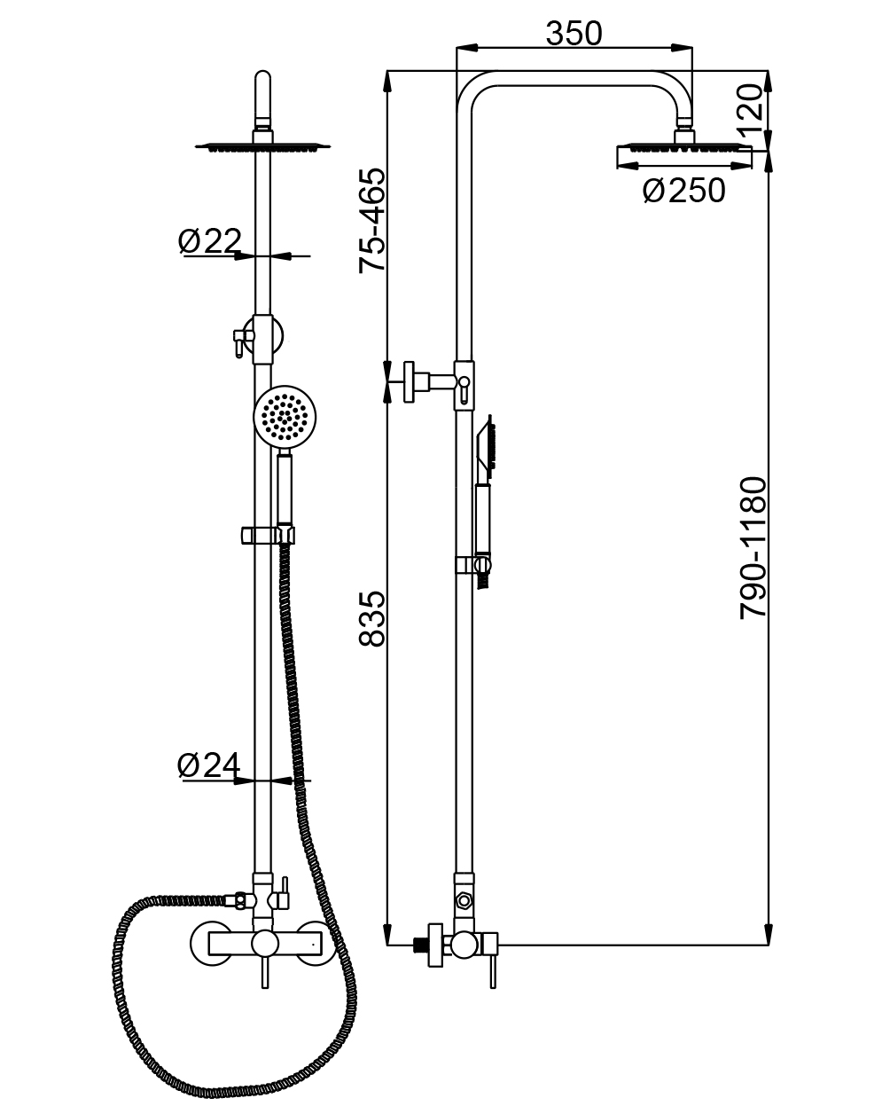• Душевая штанга - 135 см.