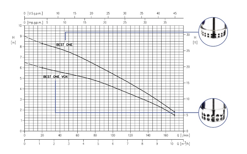 Ebara Best One Vox M 10МТ поставляется в качестве дренажного погружного электрического насоса для чистой воды с содержанием максимальными размерами твердых частиц 20 мм.