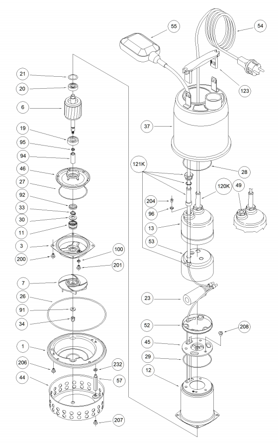 Насос в состоянии перекачивать жидкости с твердыми частями до 20 мм.