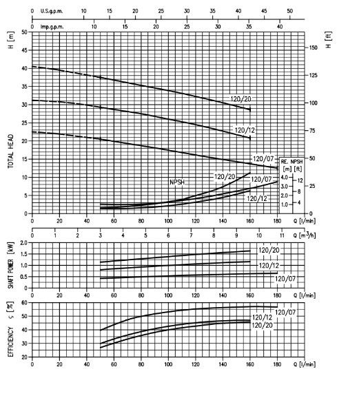 Корпус насоса выполнен из высококачественной нержавеющей стали AISI 304, а рабочее колесо из AISI 304. Данная модель обладает номинальным расходом 12 м³/час (макс. 15 м³/час), расход при этом составляет 21,3 метров водного столба (макс. 22,8 м). Диаметр напорного патрубка выполнен в формате 1 дюйм. Двигатель насоса питается от напряжения 3х380В и обладает мощностью 0,9 КВт.
