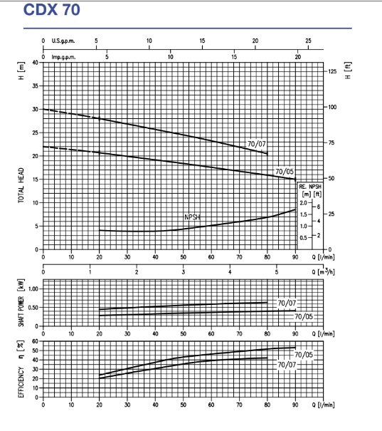Корпус насоса выполнен из высококачественной нержавеющей стали AISI 304, а рабочее колесо из AISI 304. Данная модель обладает номинальным расходом 12 м³/час (макс. 15 м³/час), расход при этом составляет 21,3 метров водного столба (макс. 22,8 м). Диаметр напорного патрубка выполнен в формате 1 дюйм. Двигатель насоса питается от напряжения 3х380В и обладает мощностью 0,9 КВт.