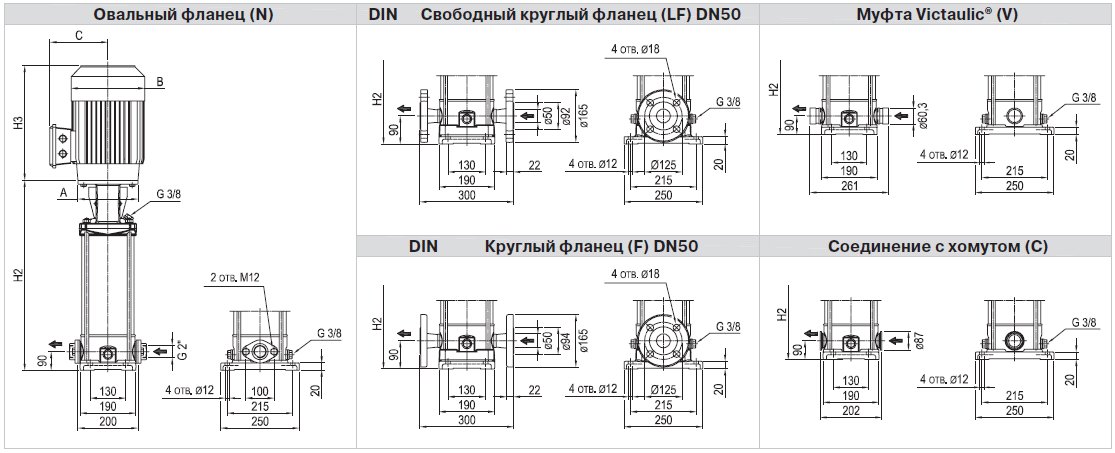 (F= круглые ответные фланцы; N= овальные ответные фланцы)