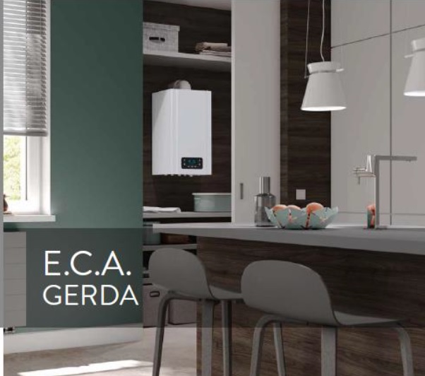 Газовый котел E.C.A Gerda 24 kw – данный котел имеет два теплообменника : первичный медный – вторичный из нержавеющей стали, КПД – 90,6%, максимальный расход приготовления горячей воды 10 л/минуту на (∆t =33,4 °C)