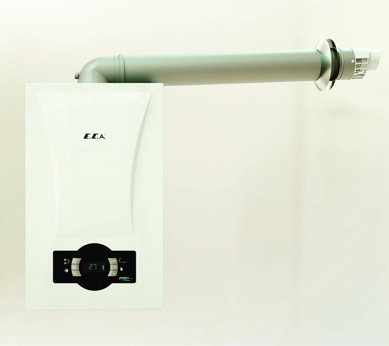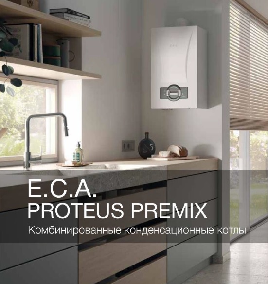 Газовый конденсационный котел E.C.A. Proteus Premix 30 kw – данный котел имеет два теплообменника из нержавеющей стали, КПД – 107,5%, максимальный расход приготовления горячей воды 12 л/минуту на (∆t =35,8 °C). Proteus Premix обеспечивает высокий уровень энергосбережения благодаря использованию конденсационной технологии. Кроме того, его компактные размеры, элегантный внешний вид и эргономичная панель управления делают его очень привлекательными изделием. Комбинированный котел Proteus Premix обеспечивает более экономное использование топлива в режиме ECO и более высокий уровень комфорта в режиме COMFORT. Proteus Premix сочетает в себе передовые конденсационные технологии, низкий уровень шума и высокую производительность. Дополнительный комплект интеллектуальных принадлежностей для комбинированного котла.