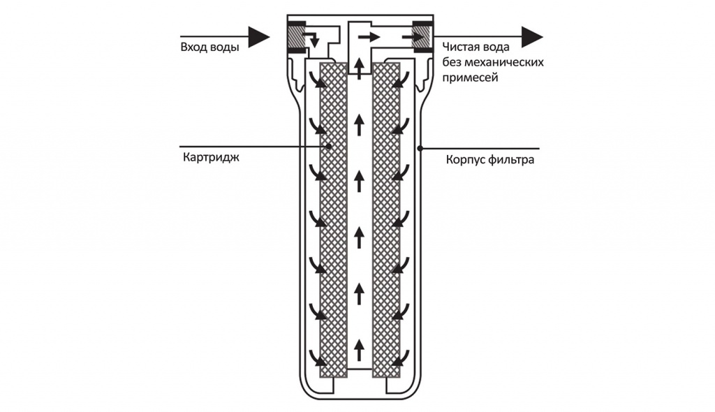 В процессе фильтрации вода подается на картридж, который удаляет загрязнения. В результате, вы получите чистую воду.