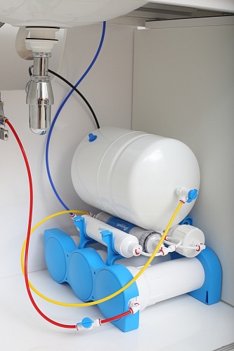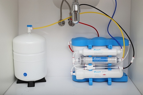 Основной элемент фильтра — мембрана обратного осмоса DOW Filmtec. Вода подвергается глубокой очистке, при этом все примеси и микроорганизмы не проходят через мембрану.