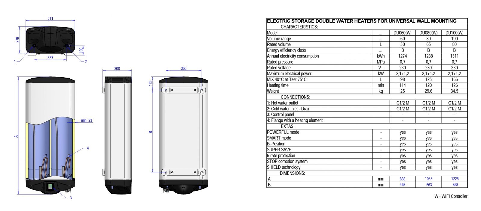 Бойлер оснащен двумя «мокрыми» ТЭНами. В случае поломки одного, вода будет нагреваться благодаря второму нагревательному элементу. Таким образом, достигается устойчивость и стабильность системы. Два нагревательных элемента обеспечивают высокую скорость нагревания для экономии времени и средств. За счет плотного теплоизоляционного слоя вспененного полиуретана вода еще долго остается теплой. Магниевые аноды увеличенной площади обеспечивают эффективную антикоррозийную защиту, а защитное реле предотвращает перепады напряжения. В этом водонагревателе предусмотрена возможность недельного программирования работы бойлера в Smart-режиме. При этом происходит автоматическое определение нужного количества воды для нагрева в нужное для вас время суток.