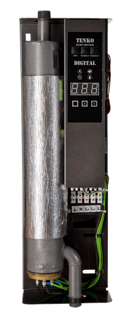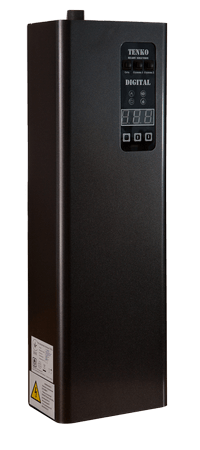 Серия электрических котлов  “Digital” производства компании Tenko предназначена для отопления помещений площадью до 150 кв.м. или как дополнительное устройство в действующей системе отопления. Серия котлов “Digital” создана как альтернатива серии котлов КЕ, оснащена возможностью управления включения/выключения насоса до или после включения тэнов, двухступенчатой системой защиты, которая предохраняет устройство от перегрева, двумя датчиками температуры, защитным модульным контактором. Теплоноситель в системе регулируется плавно в диапазоне 20-75о С. Модельный ряд  состоит из котлов мощностью от 3 до 15 кВт. Подключение возможно к сети 220В и 380В. К преимуществам электрокотлов серии “Digital” относятся: высокий коэффициент полезного действия (КПД), электронное управление, надежность, простота технического обслуживания, экологическая чистота. Детали корпуса выполнены из высококачественной стали и прошли антикоррозийную обработку. В дальнейшем на них наносится порошковая краска для создания защитного слоя и придания красивого внешнего вида. В процессе изготовления теплообменника используется исключительно высококачественная толстостенная труба, которая для продления срока службы проходит антикоррозийную обработку и гидравлические испытания при давлении в 8 бар. В комплект поставки входит руководство по монтажу и эксплуатации.