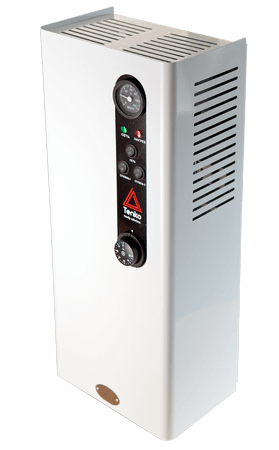 Электрокотлы серии «Стандарт» - это оборудование, которое используется для отопления помещений площадью до 150 кв.м. или в качестве вспомогательного устройства в существующей системе отопления закрытого типа. Модели данной серии отличаются высокой надежностью и выпускаются мощностью от 3 до 15 кВт. Котлы имеют три ступени нагрева, а подключение возможно в электрическую сеть 220 В или 380 В. Котлы «Стандарт» оснащены двухступенчатой системой защиты, которая предохраняет устройство от перегрева, датчиком давления, отключающим питание при отсутствии давления в системе, а также предохранительным клапаном, сбрасывающим давление в системе выше максимально допустимого в 3 атм. Электрические котлы данной линейки комплектуются надежным трехскоростным циркуляционным насосом, автоматическим воздухоотводчиком, аналоговым термометром, световыми индикаторами режимов работы и капиллярным термостатом, который позволяет плавно регулировать температуру в диапазоне 0 – 90°С. За счет грамотных инженерных решений, основанных на многолетнем опыте, электрические котлы серии «Стандарт» являются максимально доступными по стоимости в сравнении с аналогами зарубежных и отечественных производителей. Представленная линейка электрокотлов ТМ Tenko позволяет максимально упростить монтаж и эксплуатацию систем отопления, чем пользуется заслуженной популярностью у широкого круга потребителей.