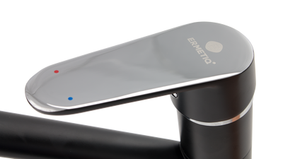 Смеситель для раковины и мойки Ermetiq ER-A205N - одно рычажный с длинным черным гусаком. Корпус изготовлен по новейшей технологии «литье под давлением», что значительно увеличивает срок эксплуатации смесителя.