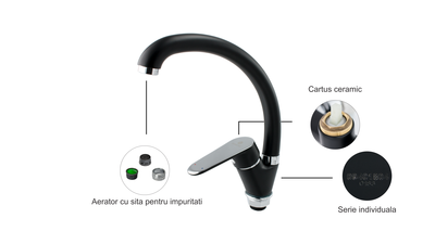 • Черное покрытие  позволит вам легко очистить смеситель от грязи.