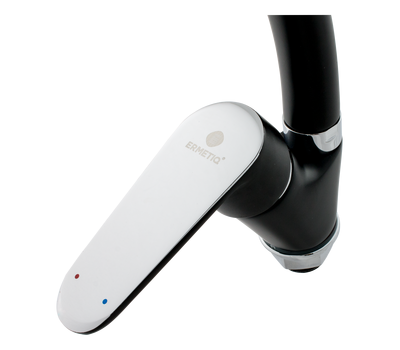 Смеситель для кухни одно рычажный дуговой Ermetiq ER-A207N.Эксклюзивное цветовое решение: черный.Корпус изготовлен из высококачественной латуни, что значительно увеличивает срок эксплуатации смесителя.