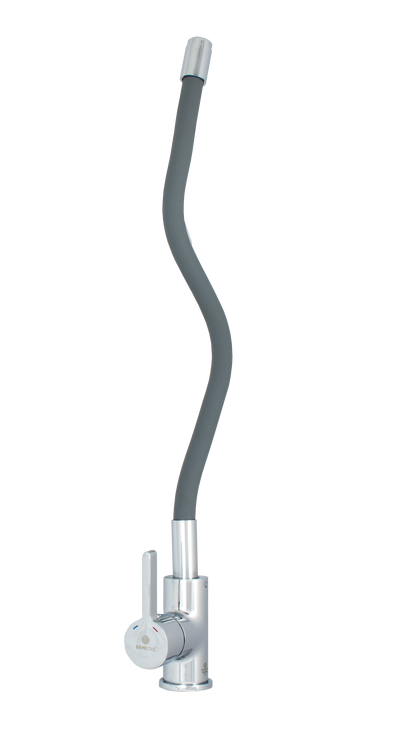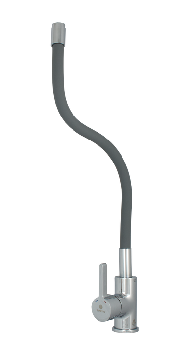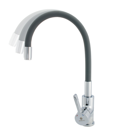 Серый смеситель для кухни Ermetiq ER-A208G с гибким гусаком имеет конструкцию, позволяющую самостоятельно регулировать высоту излива и глубину выноса, что очень удобно и несмотря на непривычный внешний вид, достаточно практично.