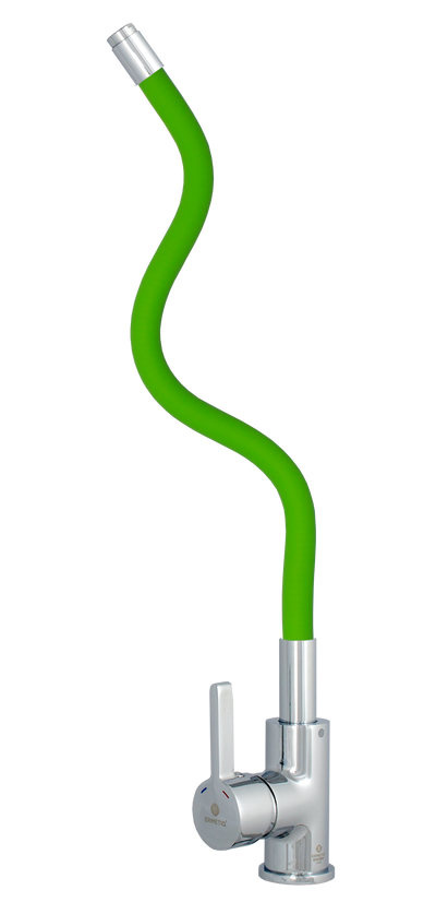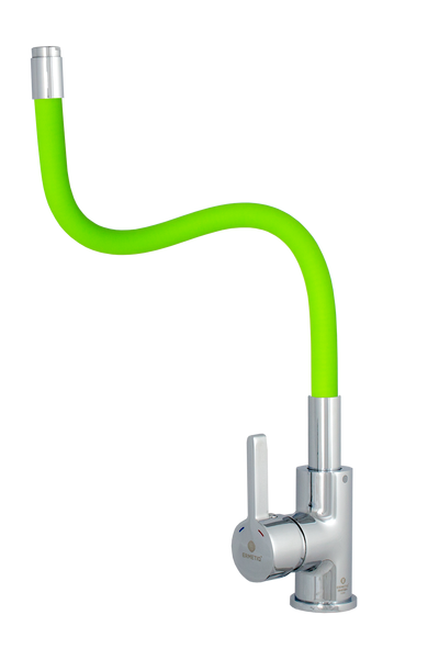 Зеленый смеситель для кухни Ermetiq ER-A208V с гибким гусаком имеет конструкцию, позволяющую самостоятельно регулировать высоту излива и глубину выноса, что очень удобно и несмотря на непривычный внешний вид, достаточно практично.
