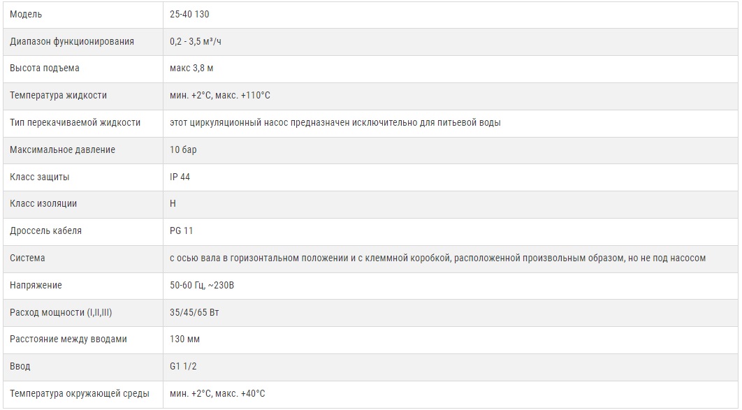 Циркуляционный насос FERRO 25-40 130 0203W Корпус насоса изготовлен из чугуна, кожуж отлит из алюминия, а ротор сформирован из пластмассы. Высокого качества двухполюсный двигатель, асинхронный, не требует защиты от перегрузки, имеет три скорости вращения, регулируемые при помощи специального переключателя, установленного на клеммной коробке, что позволяет приспособить работу насоса к характеристике системы. Устройство соответствует европейской норме EN 60335-1 и EN 60335-2-51.