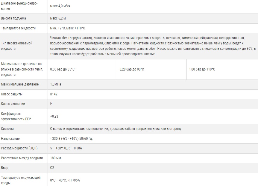 Макс. температура жидкости мин. +2°C, макс +110°C ⁰С