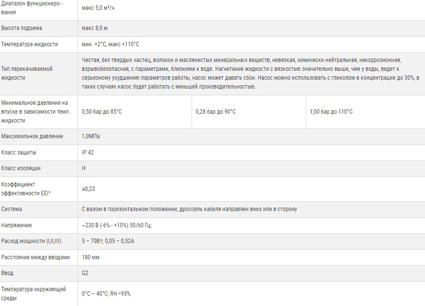 Макс. температура жидкости мин. +2°C, макс +110°C ⁰С