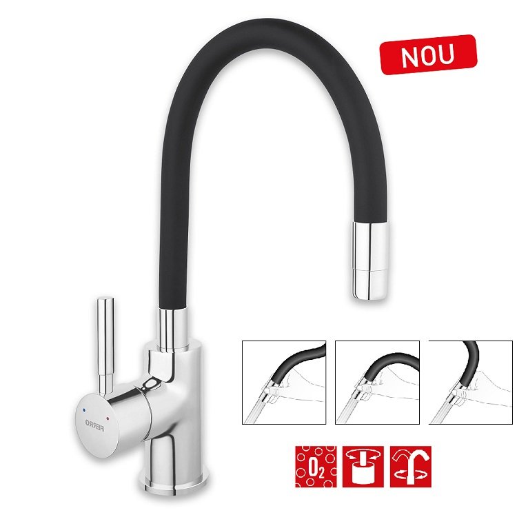 Гибкий смеситель для кухни FERRO ZUMBA BZA4B – это инструмент повседневного пользования, поэтому выбору очередного смесителя было уделено много внимания. Смеситель для кухни с гибким изливом помогает преодолеть ежедневную домашнюю рутину.