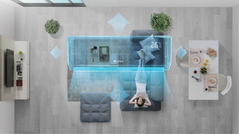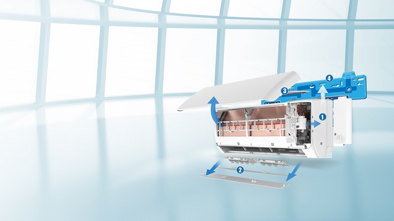 Встроенный фильтр, расположенный в верхней части внутреннего блока, легко разбирается и чистится, блокирует пыль и крупные примеси из воздуха. За ним следует еще один второй фильтр, который удаляет мелкие частицы, но также оказывает антибактериальное действие. Вам остается только дышать, без каких-либо забот, чистым и здоровым воздухом.