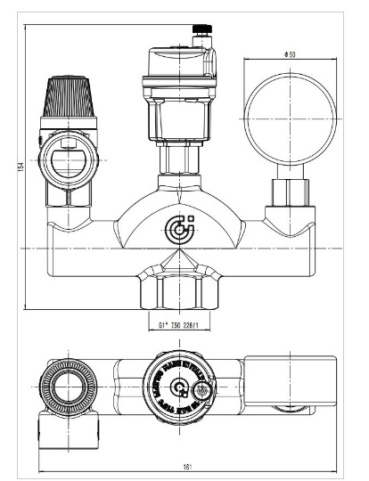 Группа безопасности CALEFFI 1" 3 bar ( Без изоляции) Предназначена для закрытых систем отопления. Консоль изготовлена из латунного литья MS 58. Благодаря особой конструкции, находящиеся в отапливаемой воде маленькие воздушные пузырьки отводятся к автоматическому деаэратору быстрого действия -CALEFFI. Нижний разъем с внутренней резьбой 1 дюйм предназначен для подключения котла.