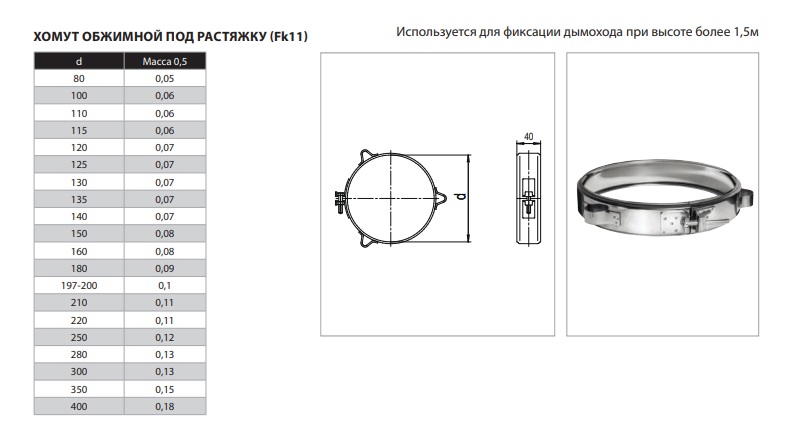 Хамут обжимной под растяжку FERRUM Ø 200 (430/0,5 mm) Одностенные дымоходы - это самое простое решение при сборке дымового канала, не требующее больших расходов. Дымоходная конструкция имеет стандартный набор различных элементов, при помощи которых можно собрать дымоотводящий канал практически любой сложности. Все элементы стыкуются между собой по раструбной системе соединения. Они могут использоваться при монтаже дымоходов в кирпичных каналах уже вошедших в эксплуатацию жилых зданий либо при монтаже каналов вентиляции. Одностенные дымоходы следует размещать только внутри отапливаемых помещений, при наружном размещении дымоходы следует теплоизолировать.