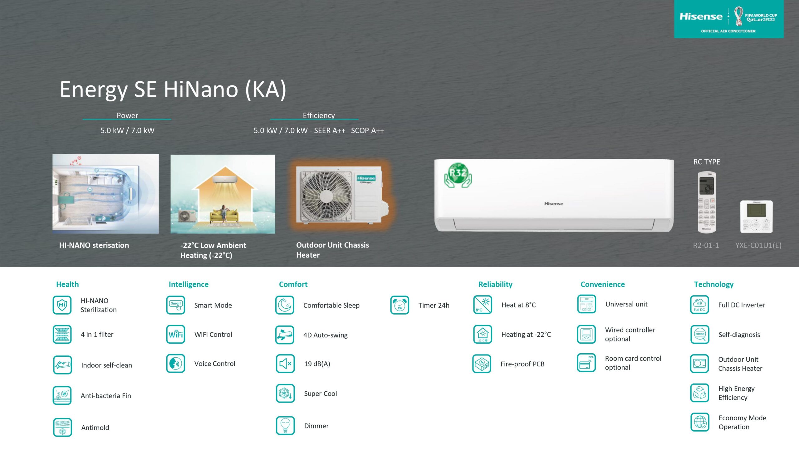 Наши технологии предварительного нагрева и электрического нагревательного шасси в кондиционерах Хайсенс позволяют обеспечивать обогрев или поддерживать температуру помещения даже при –22-24 °C на улице. Ощутите тепло солнечного дня холодным зимним вечером благодаря превосходной нагревательной способности.