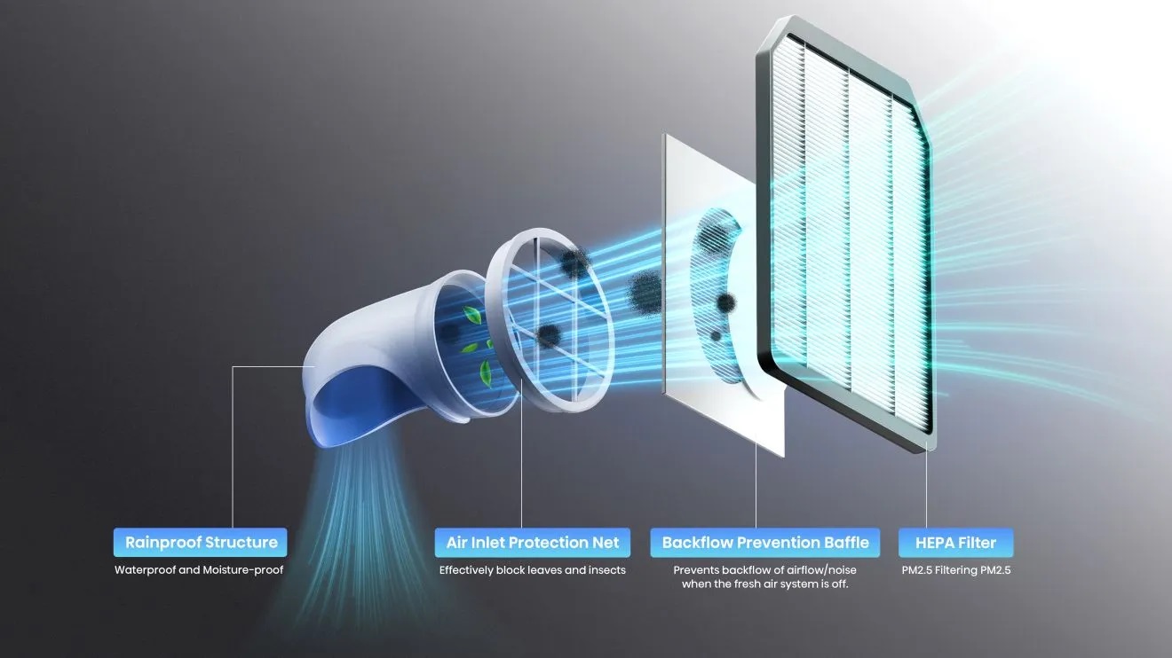 Встроенный датчик анализирует концентрацию CO2 и информирует о качестве воздуха с помощью цветного светодиодного дисплея . При необходимости устройство автоматически активирует режим свежего воздуха , повышая комфорт и безопасность пользователя.