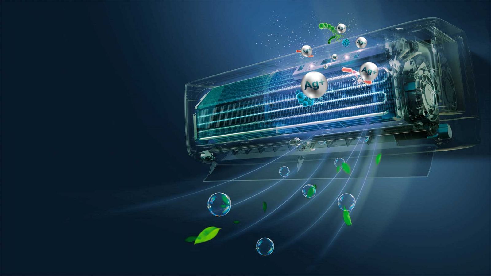 При выключении кондиционера внутренний вентилятор продолжает работать в течение 30 секунд, осушая конденсат, чтобы предотвратить образование плесени, а специальная краска на испарителе усиливает функцию удаления бактерий и пыли.