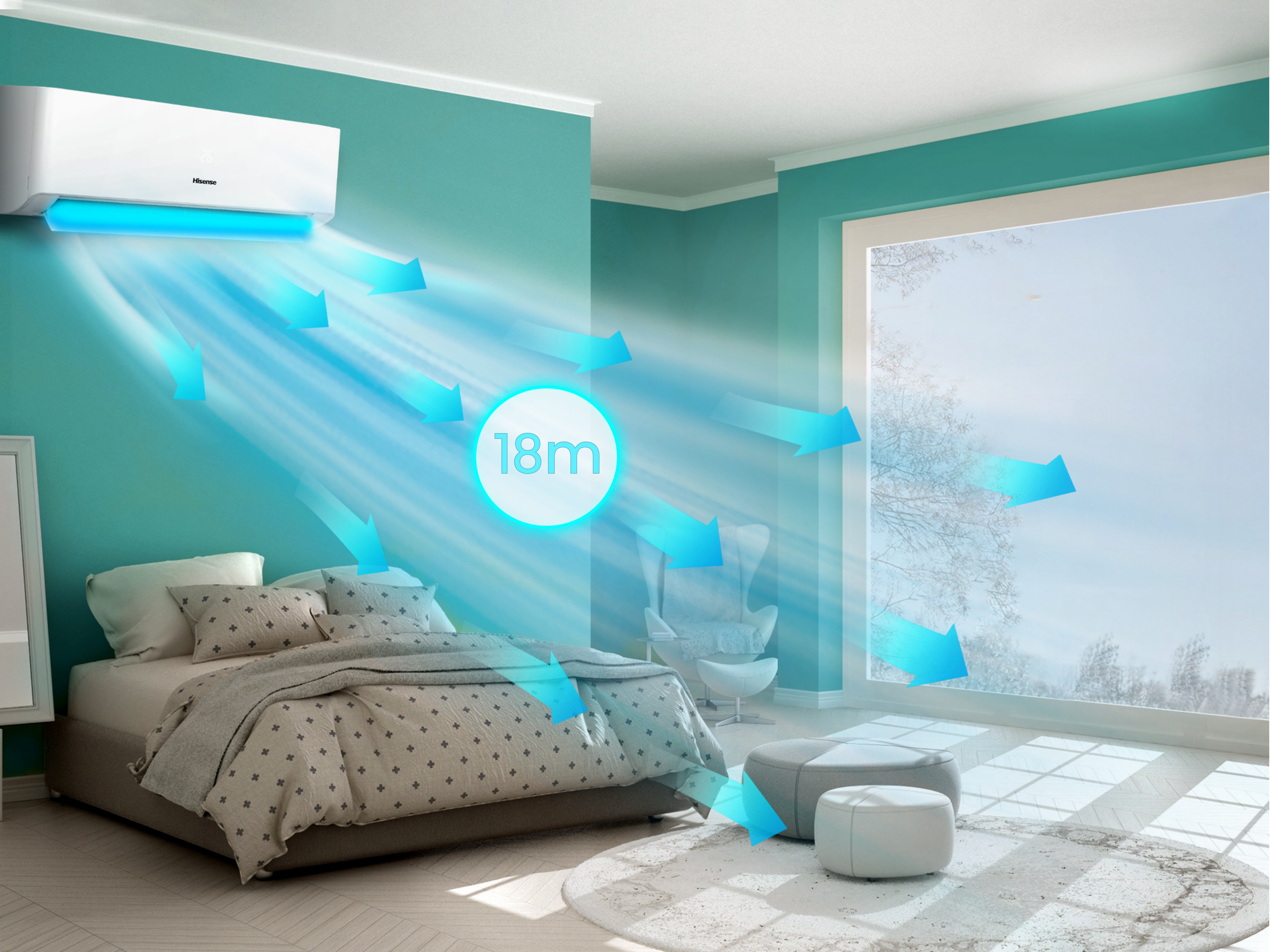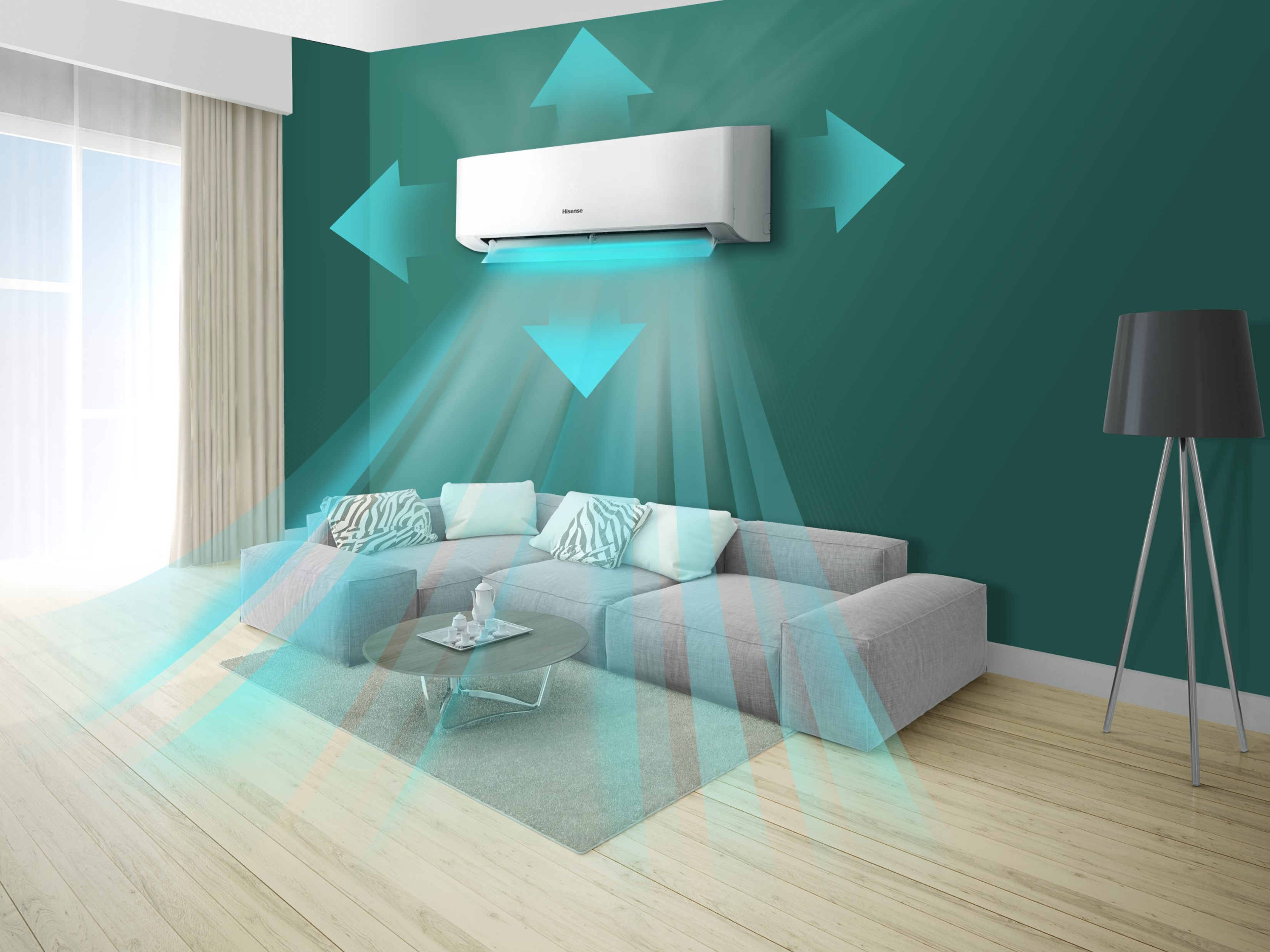 Благодаря новому поколению гидрофильных покрытий Hisense скопившуюся пыль/микроорганизмы/масло можно удалить с поверхности испарителя посредством цикла замораживания/оттаивания. Когда блок выключается, вентилятор внутреннего блока продолжает работать еще 30 секунд, чтобы осушить испаритель.