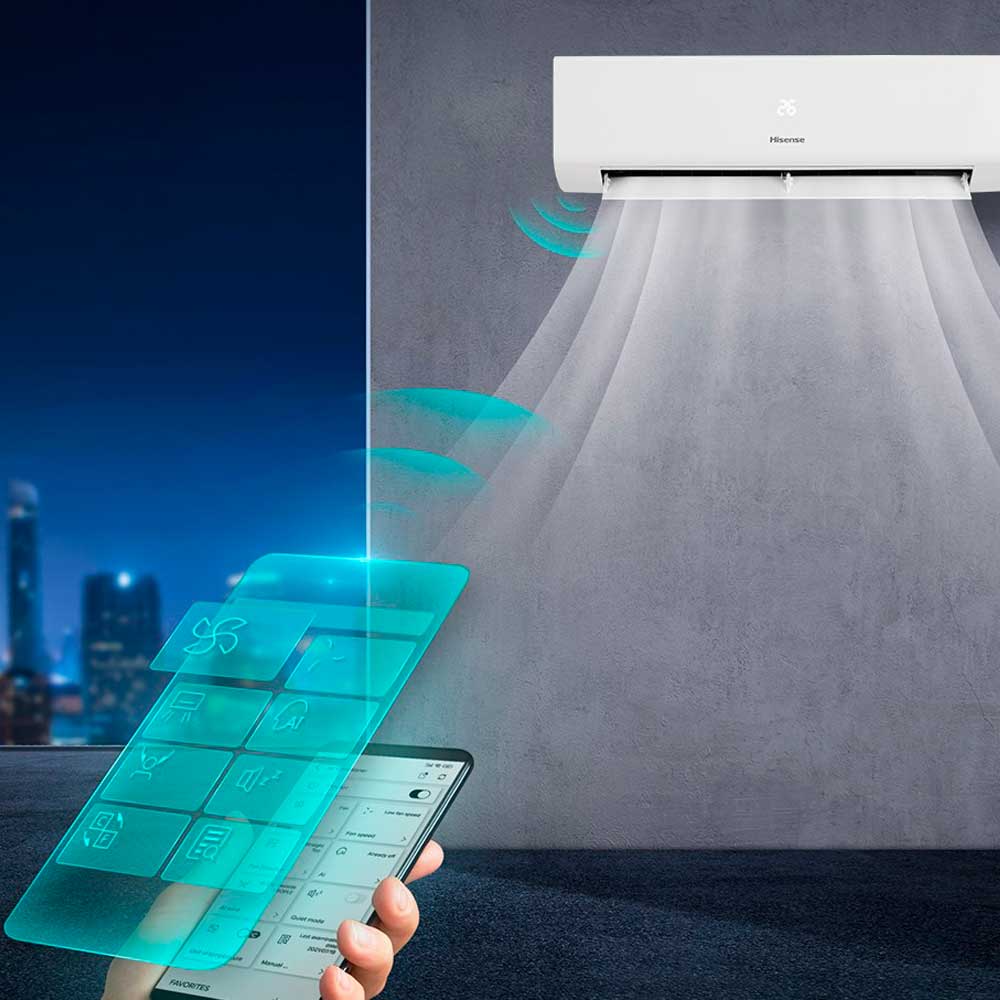Управляйте работой кондиционера из любой части дома с помощью мобильного телефона и связи Wi-Fi. Это позволит подготовить комфортные условия к своему возвращению домой или удаленно позаботиться о домашних животных.