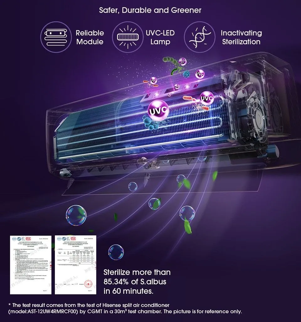 Технология HI-UVC разрушает внутреннюю структуру бактерий с помощью ультрафиолетового света, устраняя большую часть бактерий и вирусов из воздуха. Испытания* показывают, что HI-UVC стерилизует 99,999% S.aureus, 99,995% E.coli и 99,99% H1N1 за 30 минут. Более безопасный, устойчивый и экологичный.