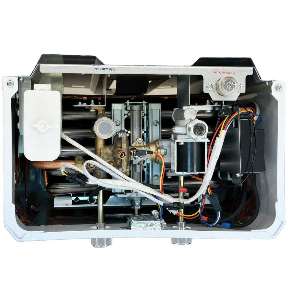 Мощность устройства составляет 20 кВт, что обеспечивает производительность до 10 литров горячей воды в минуту. Использование прибора максимально упрощено: с помощью одного прикосновения можно установить желаемую температуру воды. После выключения и повторного включения водонагреватель автоматически сохраняет и использует ранее заданные параметры. Благодаря встроенному микропроцессору устройство самостоятельно регулирует рабочие характеристики в зависимости от температуры входящей воды и настроек пользователя, обеспечивая стабильность температуры на выходе. Дополнительно микропроцессор отвечает за контроль подачи газа.
